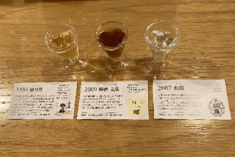 ソムリエの解説を聞きながら3種の古酒を飲み比べ、味覚とともに嗅覚でも古酒の味わいを堪能しました。