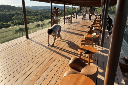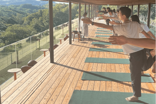 燦燦とふりそそぐ陽光、澄んだ空気、雄大な緑を背景に、ZEN Wellness(瞑想・ヨガ)を体験いただきました。