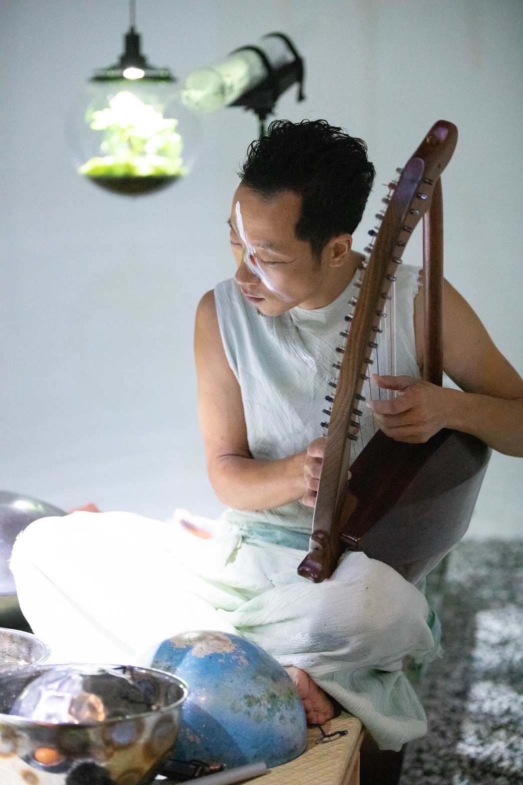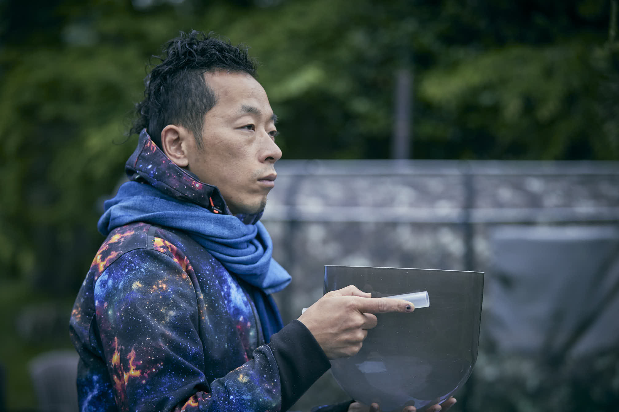 楽器制作は水楽器(ハドウラム)や鹿のメディスンドラム、竹の笛、陶器の壺太鼓などなどその土地のスピリットを感じ演奏、制作を続ける楽器、音そのものが持つ可能性、原理、源を探求し、さまざまな土地、人、自然、地球と調和する波動を伝える音楽家。