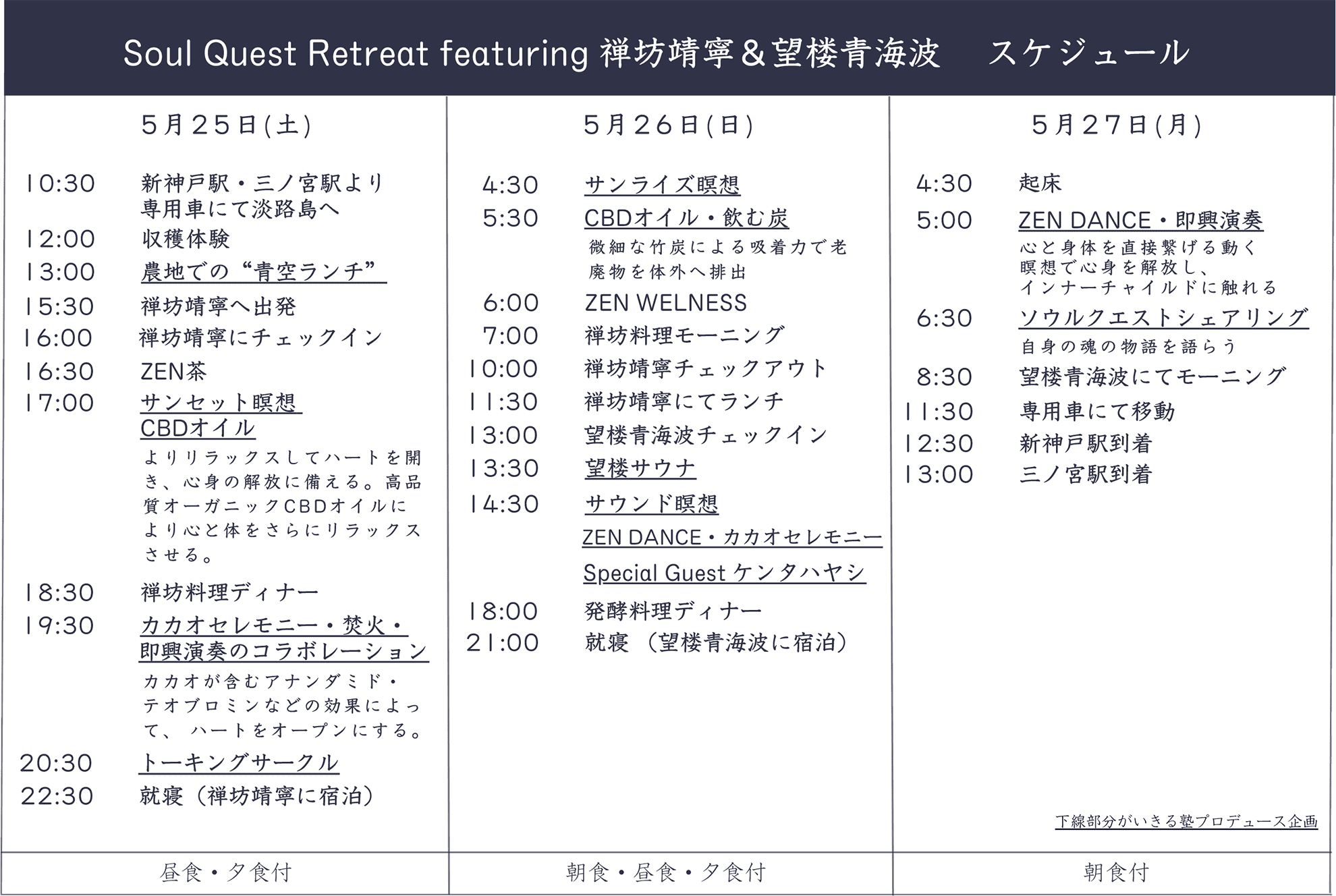 普段からビジョンを持って忙しく生きるあなたにとって、このリトリートは忙しい日常から離れ、本当の自分に再び繋がる素晴らしい特別な体験となるでしょう。本当の自分と繋がったあなたは、日常に戻っても波動軽く生きられることでしょう。